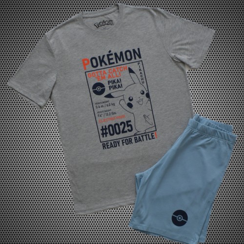 ORİJİNAL POKEMON ERKEK ALT ÜST TİŞÖRT ŞORT PİJAMA TAKIM GRİ-MAVİ 55218