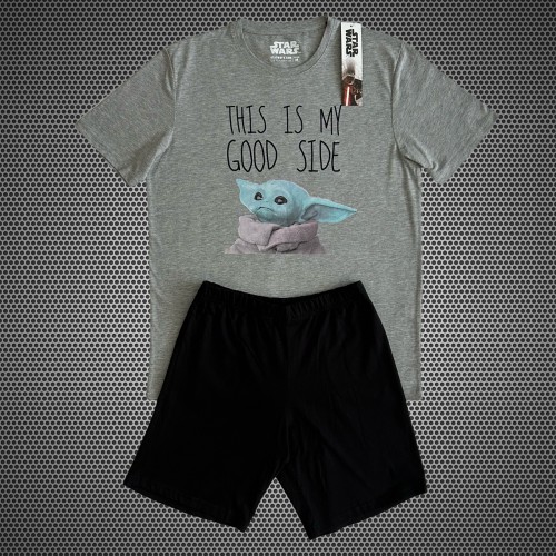 ORİJİNAL STARWARS ERKEK ALT ÜST TİŞÖRT ŞORT PİJAMA TAKIM GRİ-SİYAH 55221