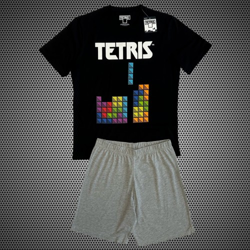 ORİJİNAL TETRİS ERKEK ALT ÜST TİŞÖRT ŞORT PİJAMA TAKIM SİYAH-GRİ 55219