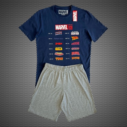 ORİJİNAL MARVEL ERKEK ALT ÜST TİŞÖRT ŞORT PİJAMA TAKIM LACİVERT-GRİ 55220